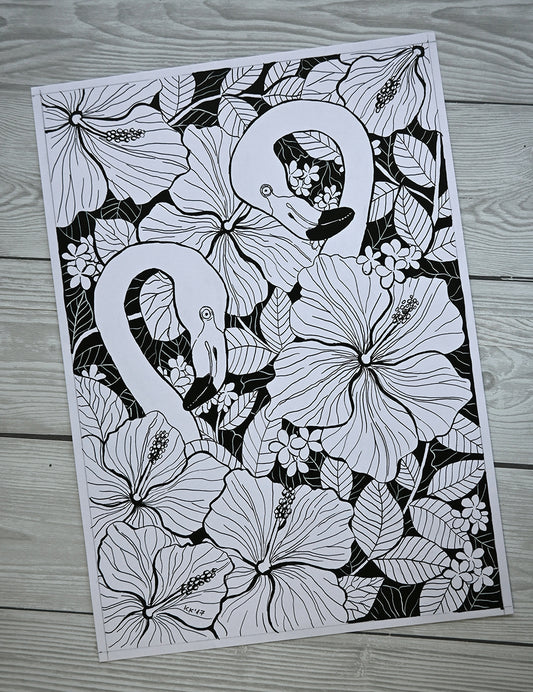 Flamingo garden, ink drawing