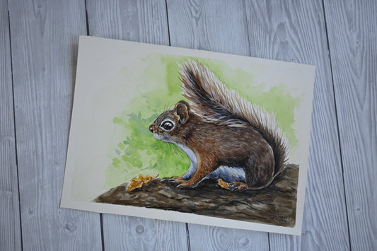 Red squirrel watercolor painting