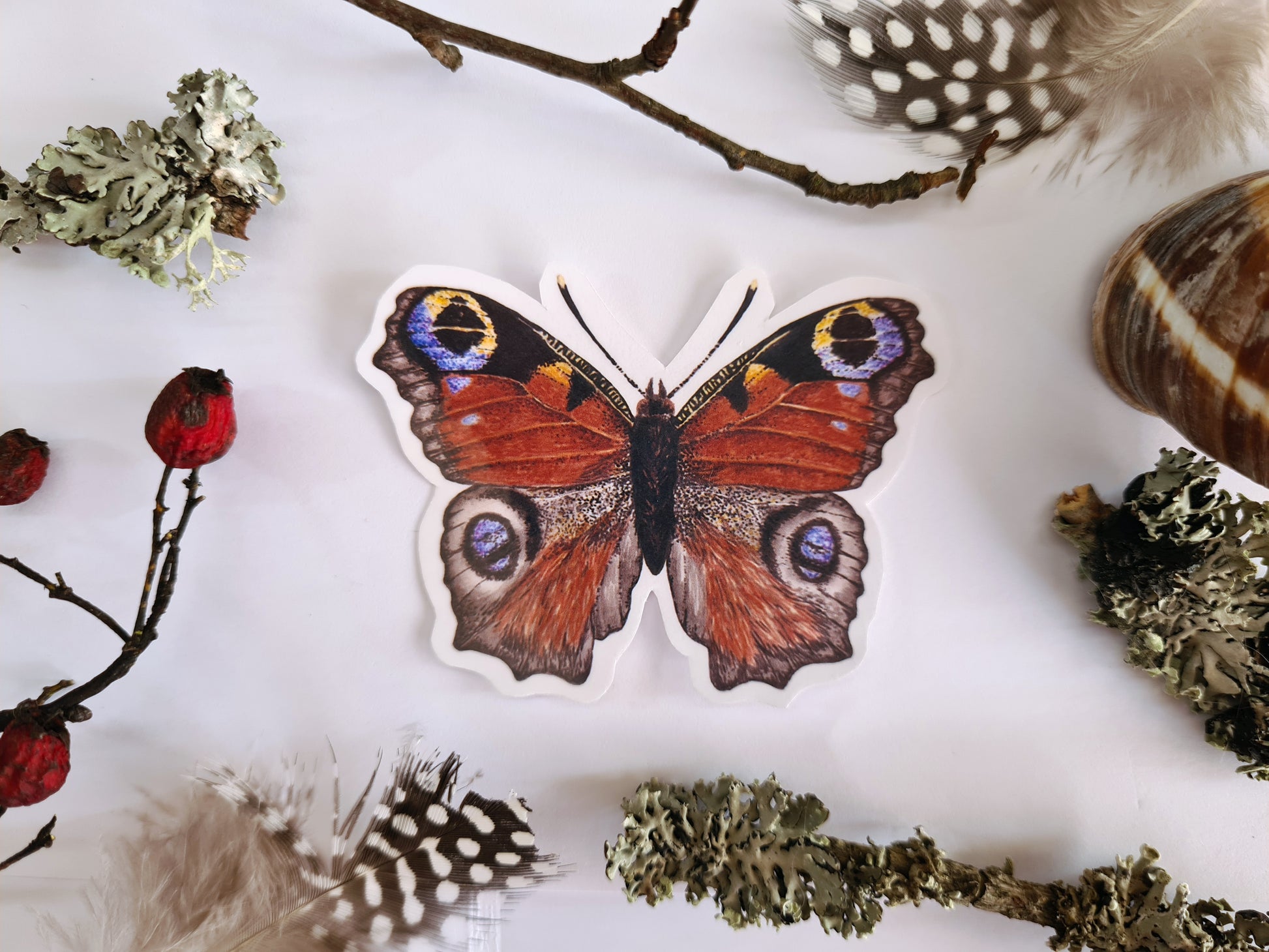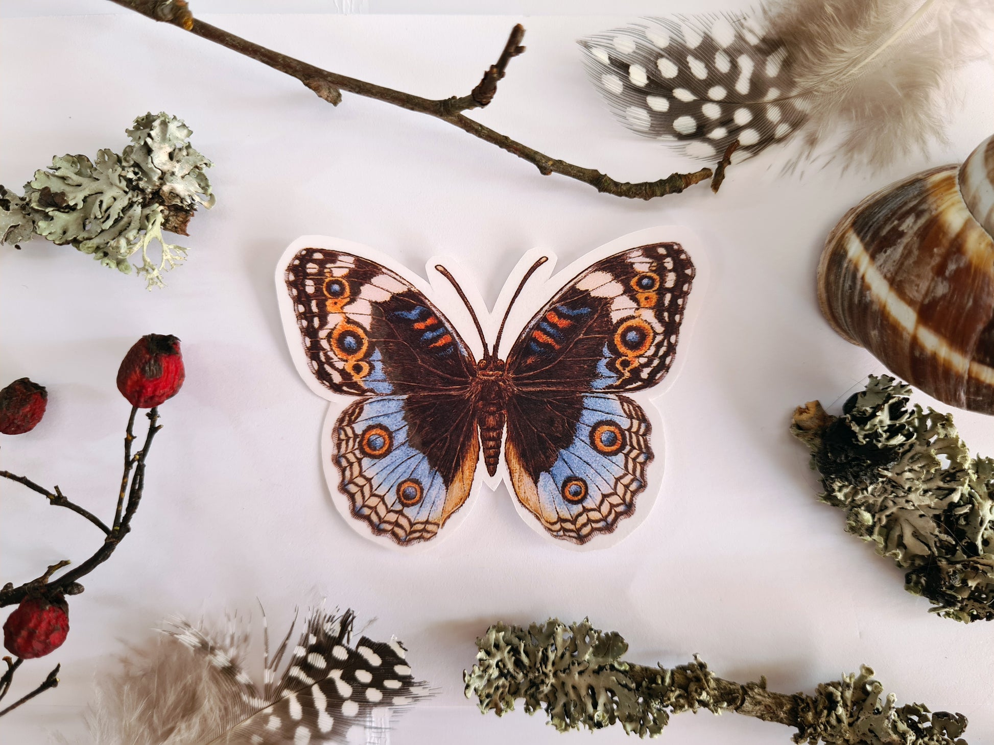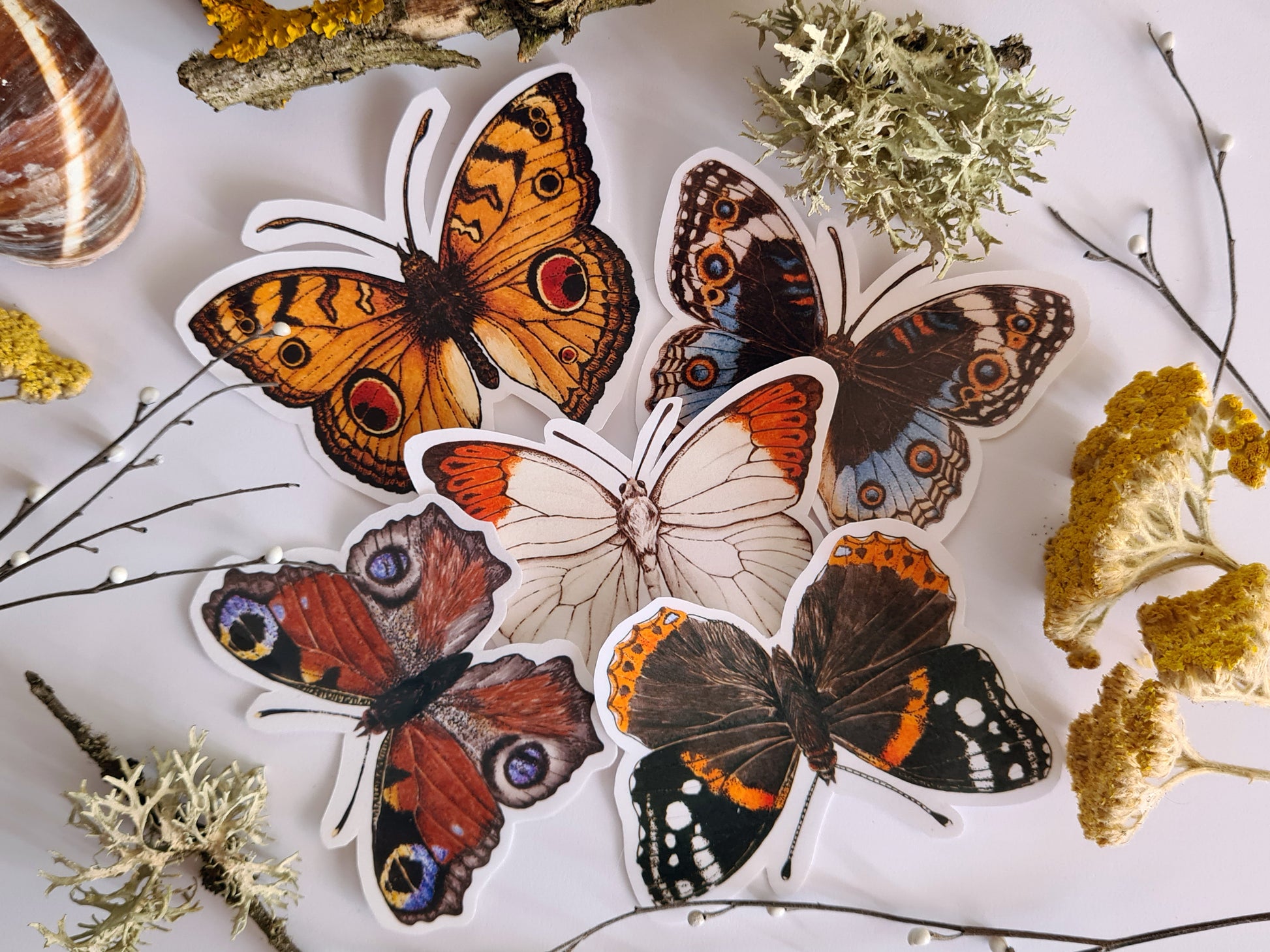 Butterfly stickers, Scrapbook Stickers, Journal Stickers, Blue pansy, Peacock pansy, Peacock, Orange-tip, Admiral butterfly